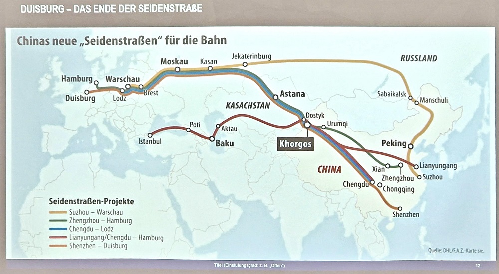 Ein wesentlicher Teil der Präsentation war die Darstellung der wirtschaftlichen Entwicklung Chinas. Erstaunlich ist, dass sich China innerhalb weniger Jahrzehnte von einem von der Landwirtschaft geprägten Staat, hin zu einer hochmodernen Industriegesellschaft umgewandelt hat. Die „neue Seidenstraße“ mit der Initiative „one belt – one road“ soll die zentrale Rolle Chinas in der wirtschaftlichen Welt untermauern. China hat in den vergangen Jahren auch vermehrt in Infrastrukturprojekte auf der ganzen Welt investiert und Handelsbeziehungen mit verschiedenen Ländern aufgebaut, wie z. B. der Kauf des Hafens in der griechischen Stadt Piräus durch ein chinesisches Unternehmen. Dies verdeutlicht das geopolitische Interesse Chinas und dem wachsenden Interesse an einer strategischen internationalen Vernetzung mit China als „Global Player“.