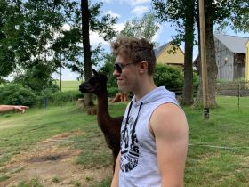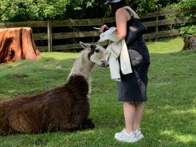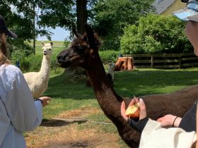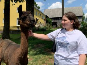 Anschließend machten wir uns auf den Weg zu einem Lama-Hof in Wüstenselbitz. Die Begegnung mit diesen faszinierenden Tieren war ein besonderes Erlebnis. Wir konnten die Lamas füttern, streicheln und mehr über ihre Bedeutung in der Textilindustrie erfahren.