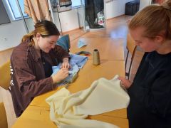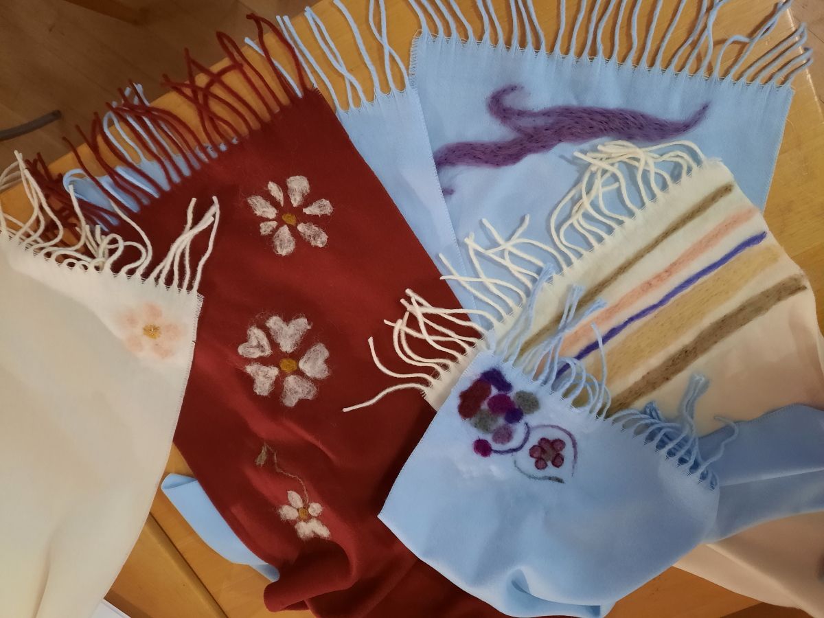 Dass Wolle filzfähig ist, war allen bekannt. Jetzt konnte jeder das Nadelfilzen einmal selbst ausprobieren und ein eigenes Muster auf einem Schal kreieren.