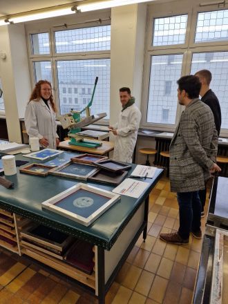 Besonders beeindruckend waren die praxisnahen Vorführungen der aktuellen Studierenden in den Bereichen Flächentechnik und Prüftechnik/Veredlung. Dadurch bekamen die Gäste einen guten Einblick in die vielseitige und praxisorientierte Weiterbildung unserer Fachschule.