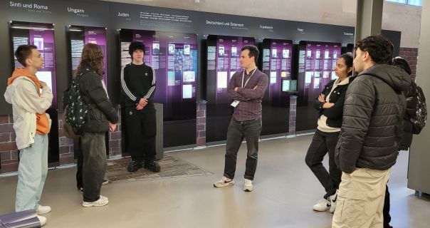 Für unsere Schülerinnen und Schüler der Berufsintegrationsklasse wurde dabei eine extra Führung in einfacher Sprache angeboten. Besonders bei der Übersicht über die Herkunft der einzelnen Inhaftierten wurde vielen bewusst, dass auch ihre Heimatländer zum Teil betroffen waren. Auch 80 Jahre nach der Befreiung hat dabei dieser Ort seine bedrückende Atmosphäre nicht verloren.