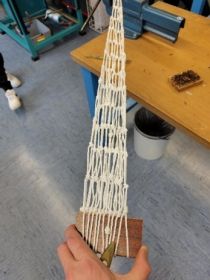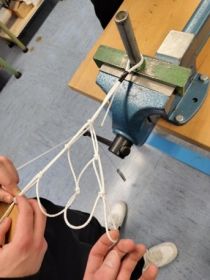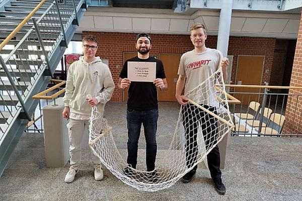 Die Klasse TSE 12 der Textilberufsschule Münchberg stellte im laufendem Schuljahr 22/23 im Rahmen eines großen Abschlussprojekts eine funktionsfähige Hängematte her. Hier fokussierten sich die Schüler auf Planung, Herstellung und Rohstoff, um im Lernfeld „knotenlose Netztuche“ ihren Anforderungen gerecht zu werden.