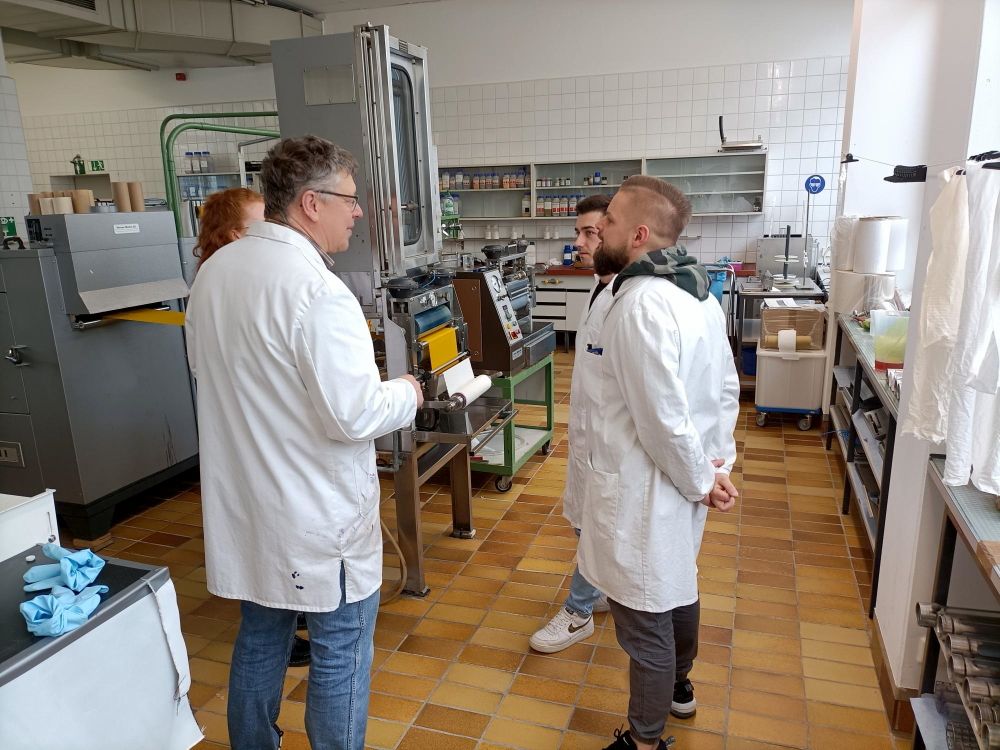 Die einzelnen Schwerpunkt-Bereiche Textilveredlung, Maschentechnik, Webereitechnik und der Vliesstoffherstellung wurden von den jeweiligen Lehrkräften und den Schülerinnen und Schülern der Fachklassen vor Ort praktisch vorgestellt. Dabei konnten die Gäste einen guten Einblick in den handlungsorientierten Unterricht und das fachpraktische Arbeiten der Textilfachschule gewinnen.