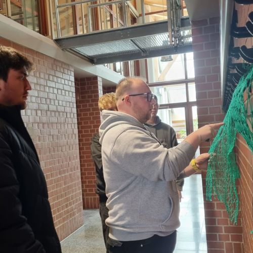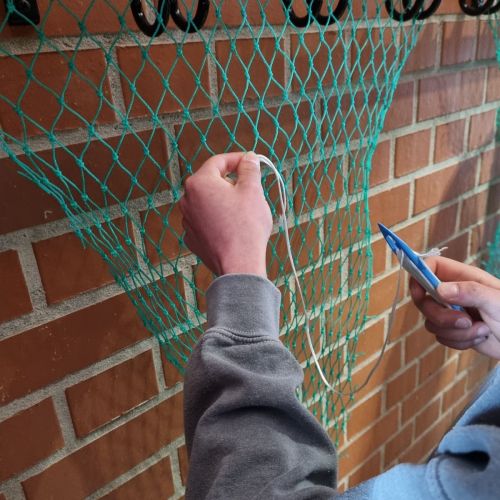 Hierbei lernten die Schüler das Flicken kaputter Netze und wie man diese korrekt zuschneidet. Somit konnten Sie ihr bereits erlerntes Wissen einmal ausführlich in der Praxis unter Beweis stellen.