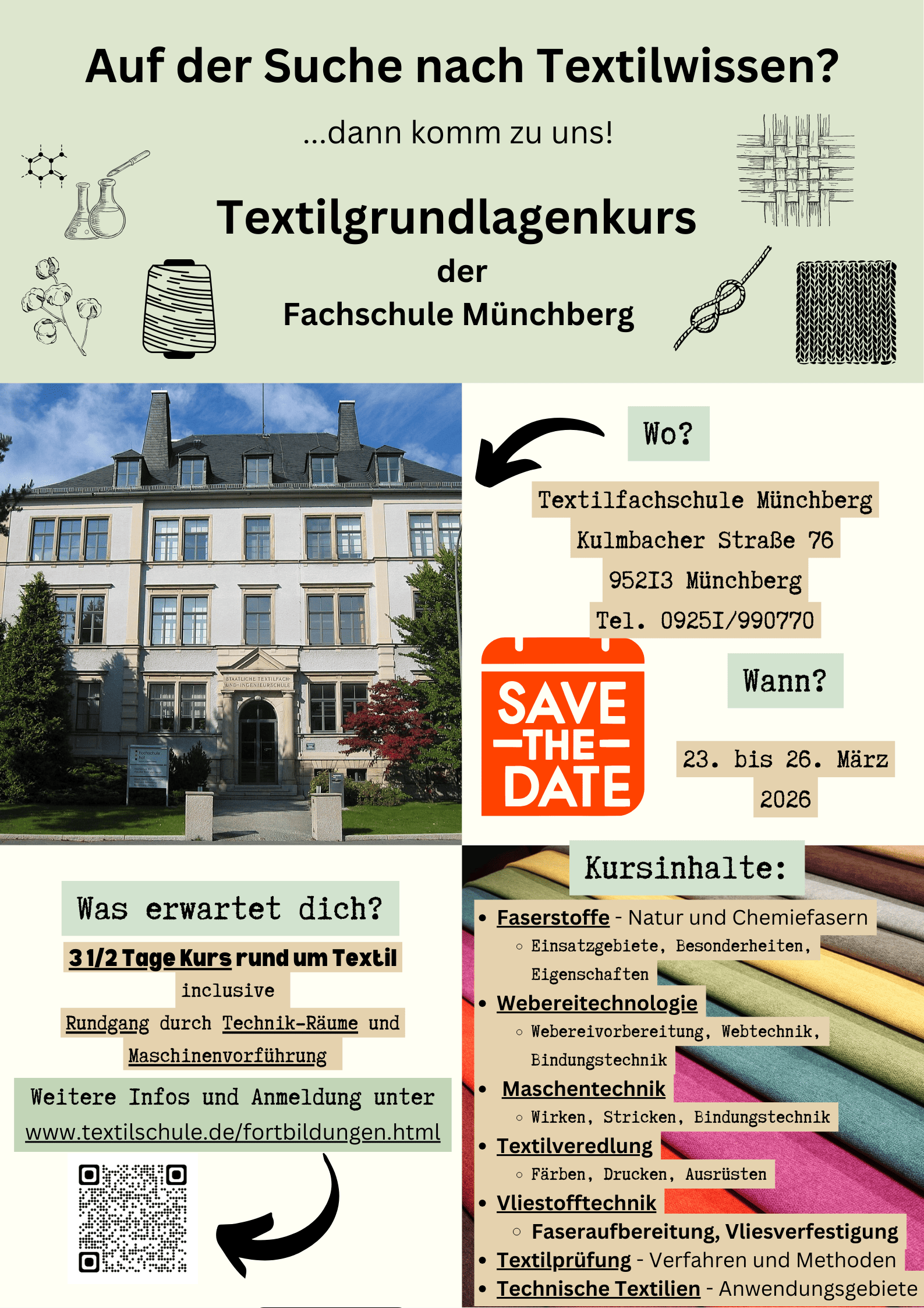 Vom 23. - 26.03.26 an der Textilfachschule Münchberg.